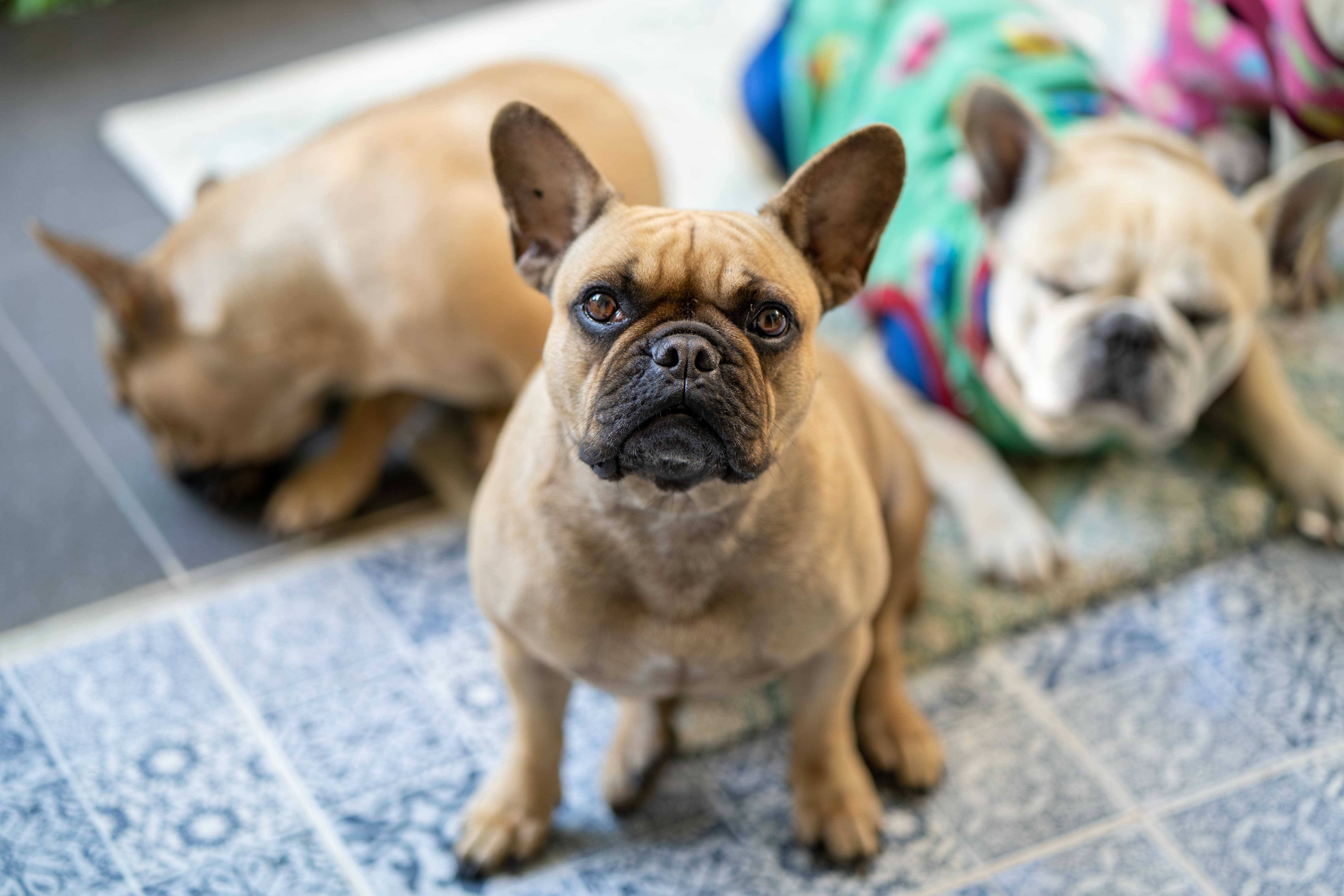 French Bulldogs were originally bred in the 1800s in France as companion dogs for lace workers who moved from Nottingham, England. These dogs were a smaller version of the English Bulldog, bred for companionship rather than work. Over time, selective breeding focused on physical traits like their compact size, bat-like ears, and short tails.